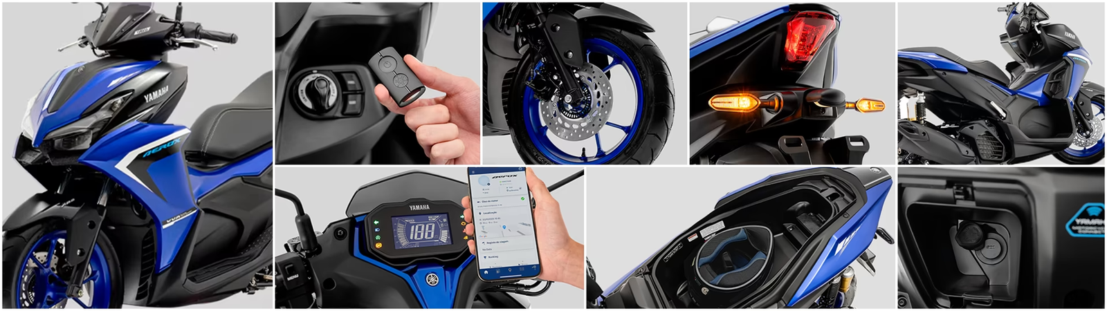 A Aerox ABS Connected traz motor 160 cc com VVA (Atuação de Válvula Variáriel), entregando torque em baixas velocidades, potência em altas e aceleração progressiva.