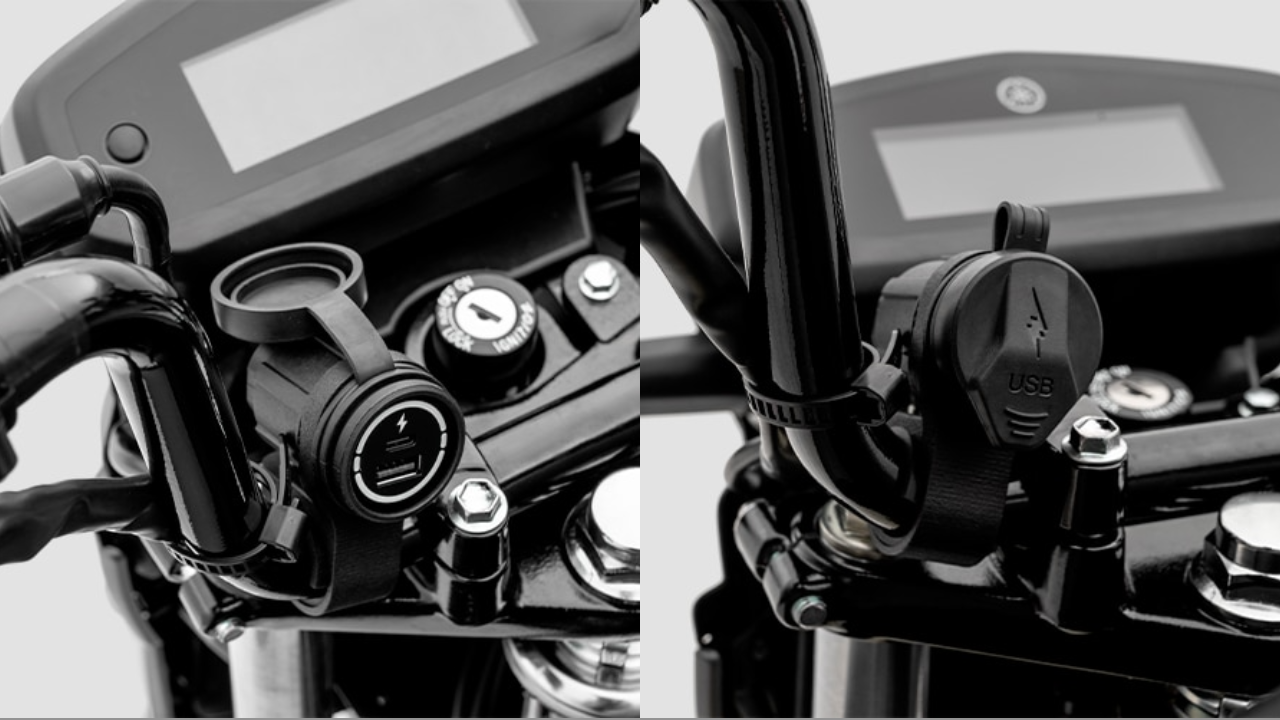 Sua nova FACTOR DX ainda pode receber um upgrade com o Pack Plus, que inclui tomada USB (uma entrada tipo A e outra tipo C), oferecendo muito mais conveniência, especialmente para quem utiliza a moto como ferramenta de trabalho.